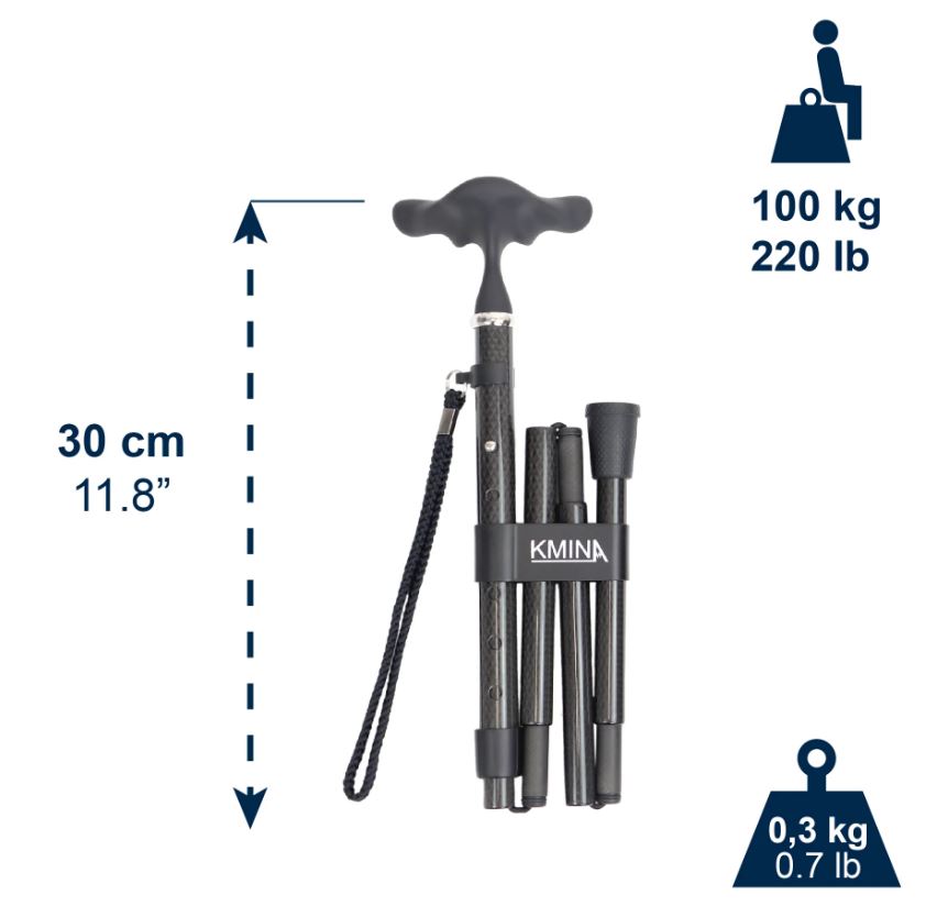 Made from carbon fiber, this walking stick supports up to 100 kg and offers stability, ideal for those looking for extra support without excessive weight