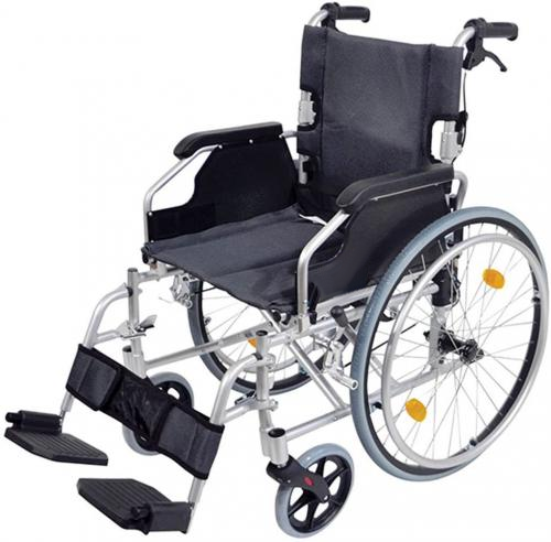 The Deluxe Lightweight Self Propelled Aluminium Wheelchair from Aidapt is our latest design in lightweight, compact wheelchairs. Made from high grade aluminium with a double cross bar for strength, the Lightweight Aluminium Wheelchair also offers ease of movement for the user and quick-folding for trouble-free transportation. The Deluxe Lightweight Aluminium Wheelchair is ideal for the active, independent user. Features include palm activated, quick-release solid puncture proof rear wheels, luxury padded upholstery, half folding backrest, flip back armrests, height adjustable, detachable leg rests and aluminium brakes. Reflectors are included on the spokes of the rear tyres as a safety feature. It is finished in a high quality paint finish that gives it an extremely modern and attractive look and improves the lifetime use. Featuring a 5 Year Warranty on the frame (non-transferable, activated on receipt of the guarantee card).